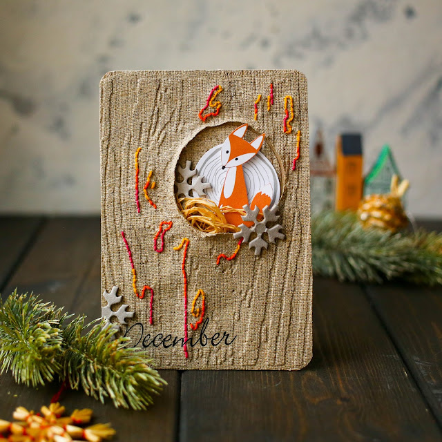 А что у меня есть))) Открытка по новому "вязаному" этапу в нашем совместном проекте "Текстурный новый год" в блоге Скрапоголики.